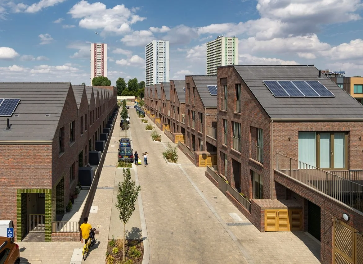 Sur ce projet nous avons collaboré avec l’agence Londonienne Maccreanor Lavington pour offrir plus de variété de formes et de typologies construites. A l’Ouest le projet se compose principalement de maisons de 2 et 3 étages, et offre un mélange de maisons familiales, de maisonnettes et d’appartements avec cour. A L’ Est le projet est composé principalement de maisons familiales de 3 étages, avec un immeuble d’appartements plus haut au sud masquant des unités industrielles à proximité.